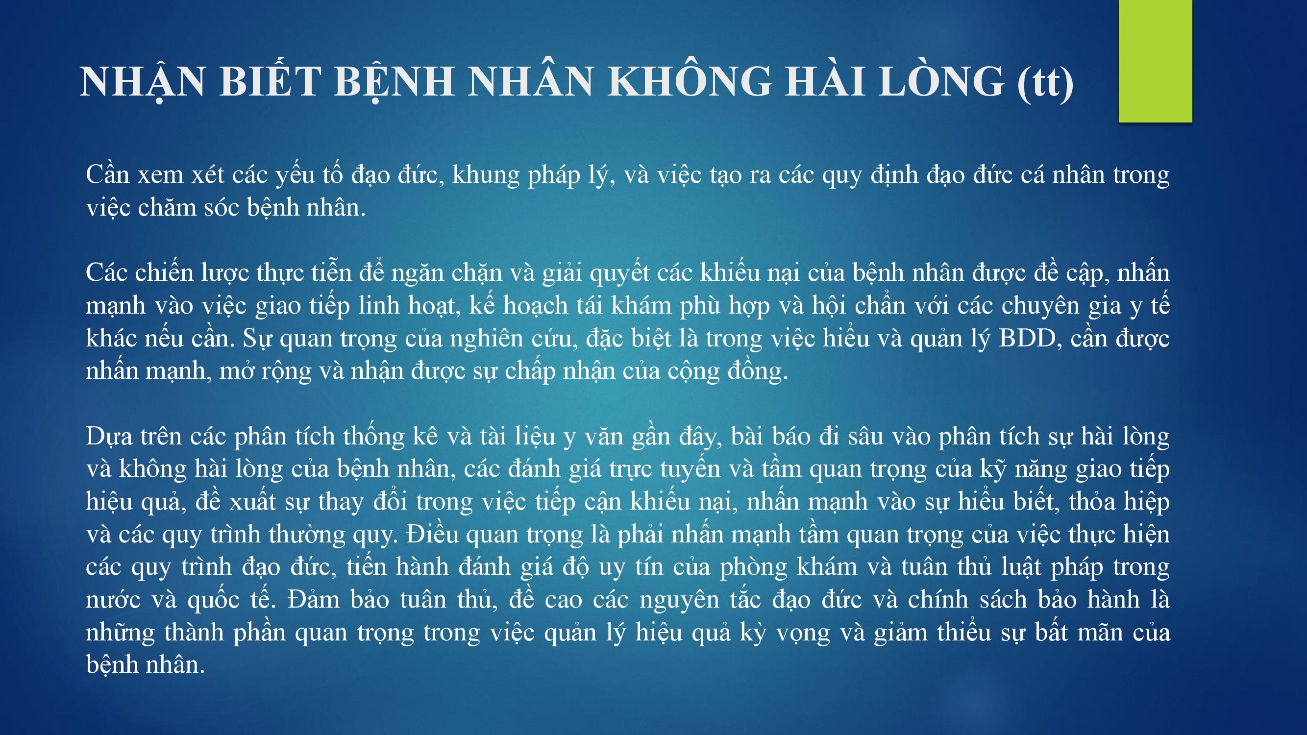 Đến với Hội nghị Khoa học PARS 2024, Tiến sĩ Amin Kalaaji mang đến 8 bài báo cáo. Trong đó, bài báo cáo thứ 8 có chủ đề “Bệnh nhân không hài lòng với kết quả điều trị: Giải quyết hay phòng tránh?”