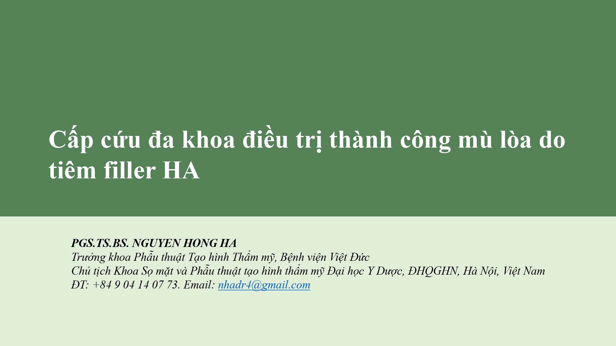 Cấp cứu đa khoa điều trị thành công mù lòa do tiêm filler HA - PGS. TS. BS Nguyễn Hồng Hà