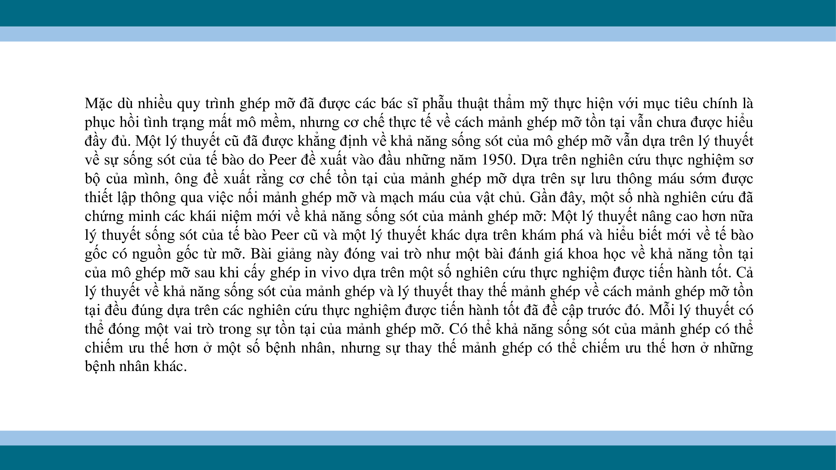 Hiện nay chúng ta biết gì về ghép mỡ tự thân? - Giáo sư Lee L.Q. Pu
