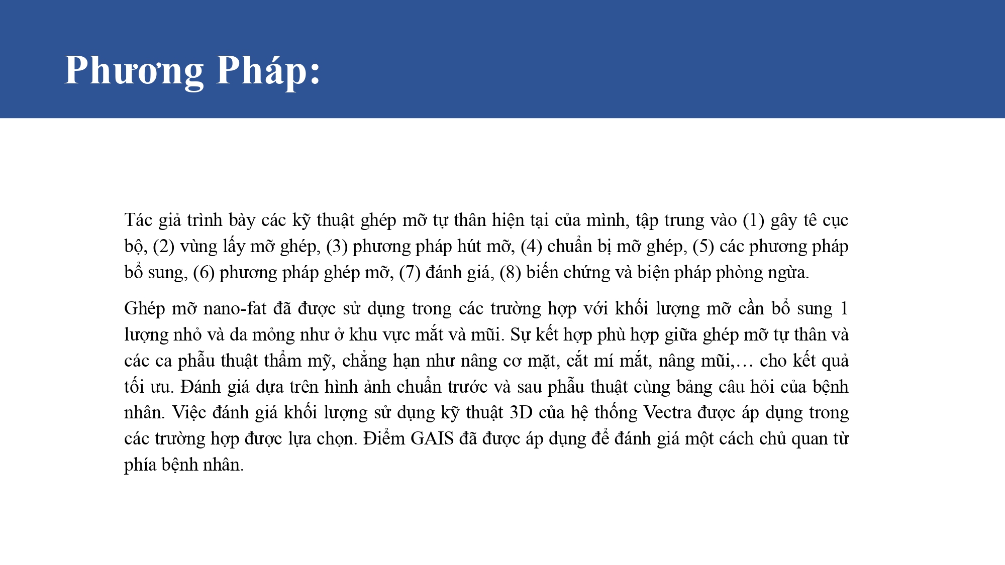 Ghép mỡ tự thân để tái tạo và làm trẻ hóa khuôn mặt. Kết quả ngoạn mục và nguy cơ biến chứng nghiêm trọng trước mắt - PGS. TS. BS Lê Hành
