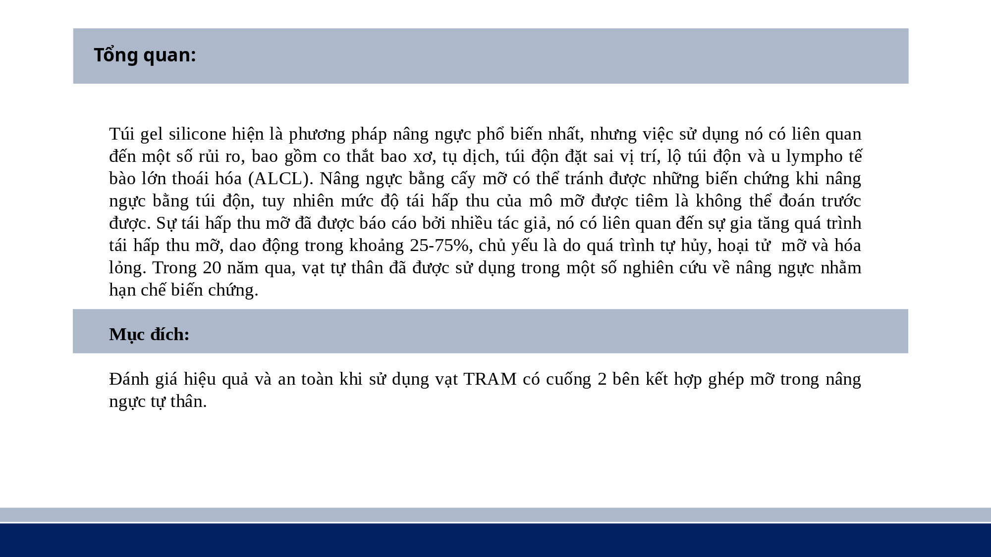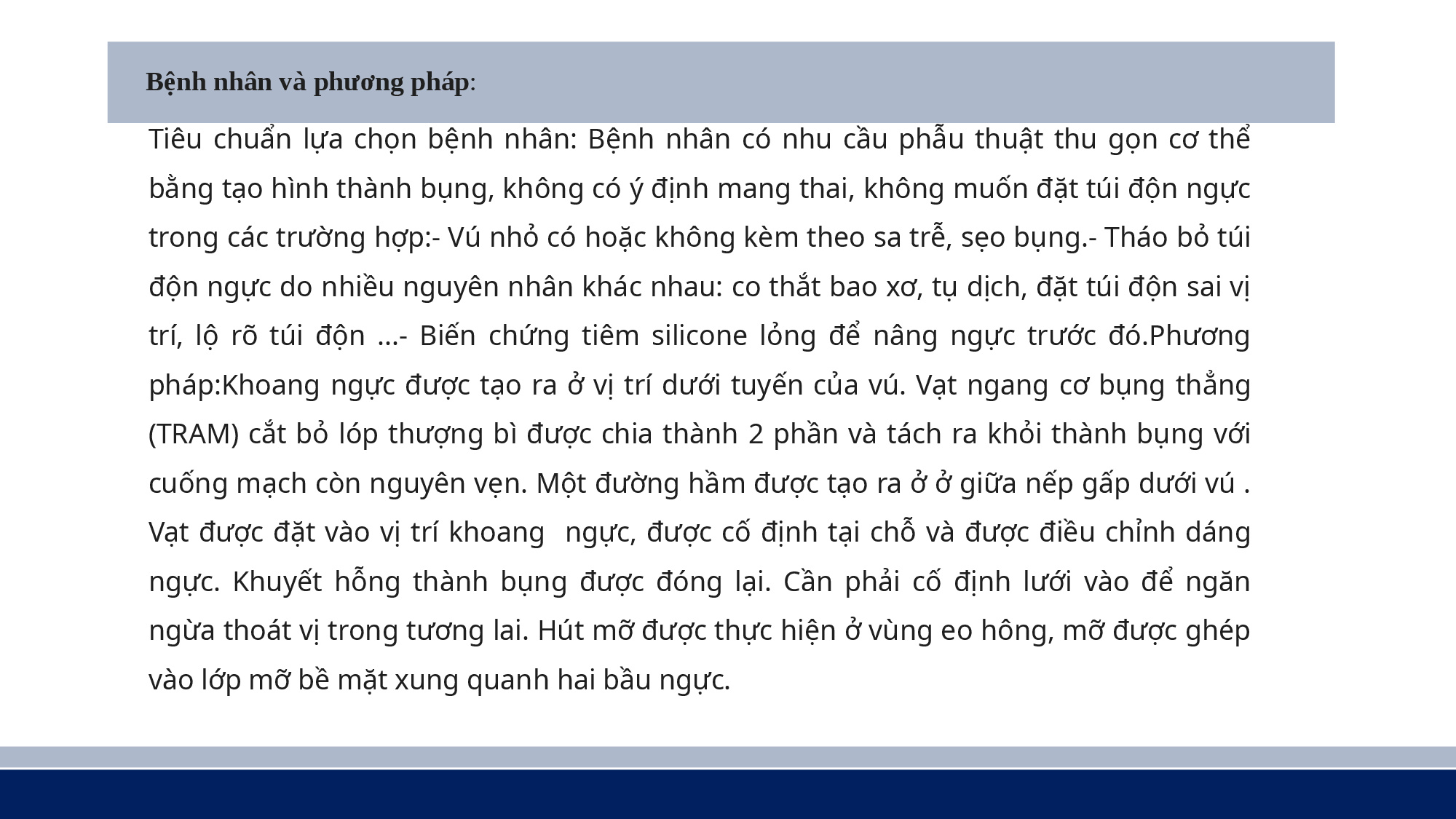 Nâng ngực tự thân bằng vạt da cơ thẳng bụng ngang có cuống và ghép mỡ - PGS. TS. BS Nguyễn Đình Tùng