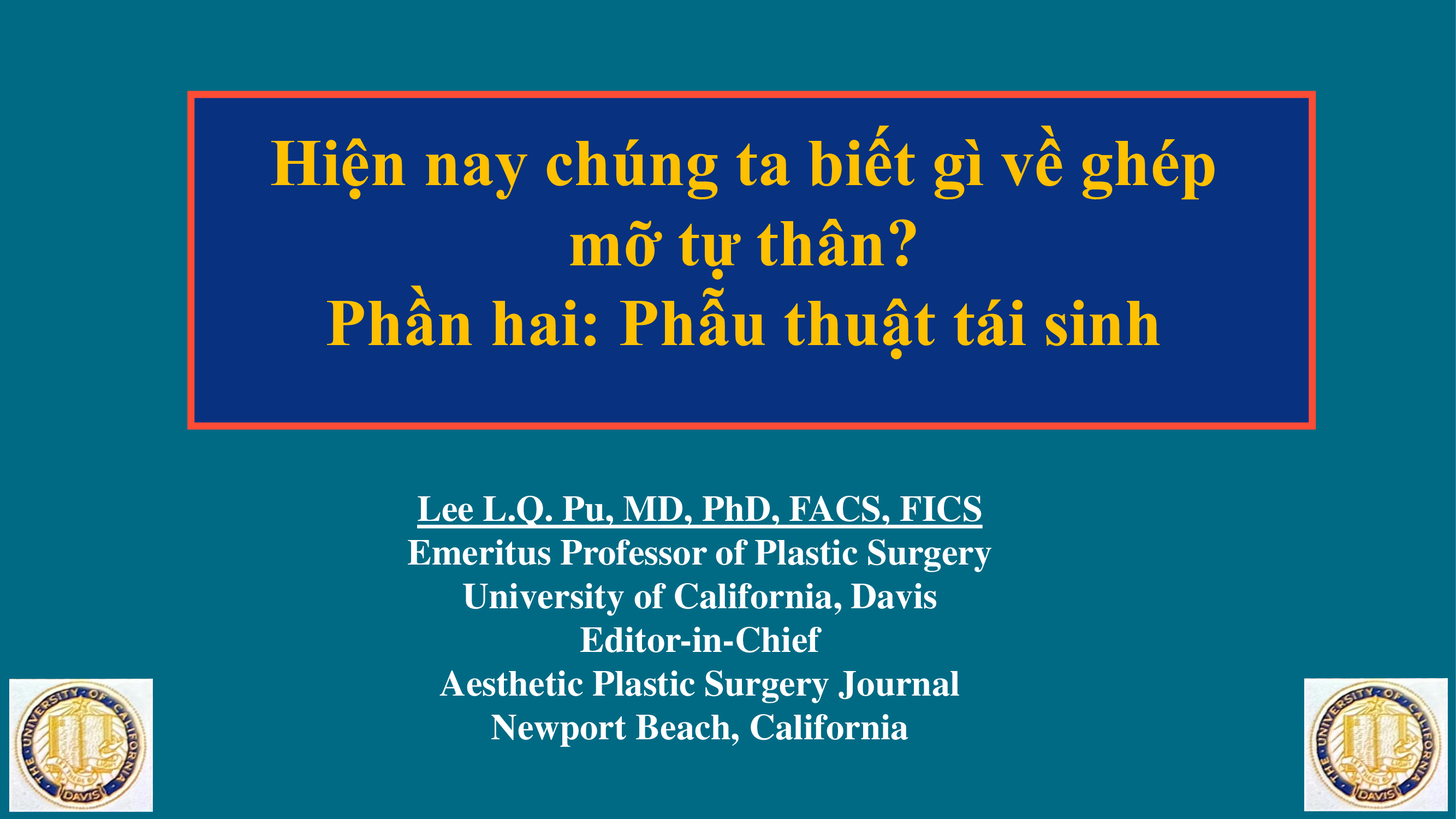 Đến với Hội nghị Khoa học PARS 2024, Giáo sư Lee L.Q. Pu mang đến 7 bài báo cáo. Trong đó, bài đầu tiên có chủ đề "Hiện nay chúng ta biết gì về ghép mỡ tự thân?" với Phần hai: Phẫu thuật tái sinh