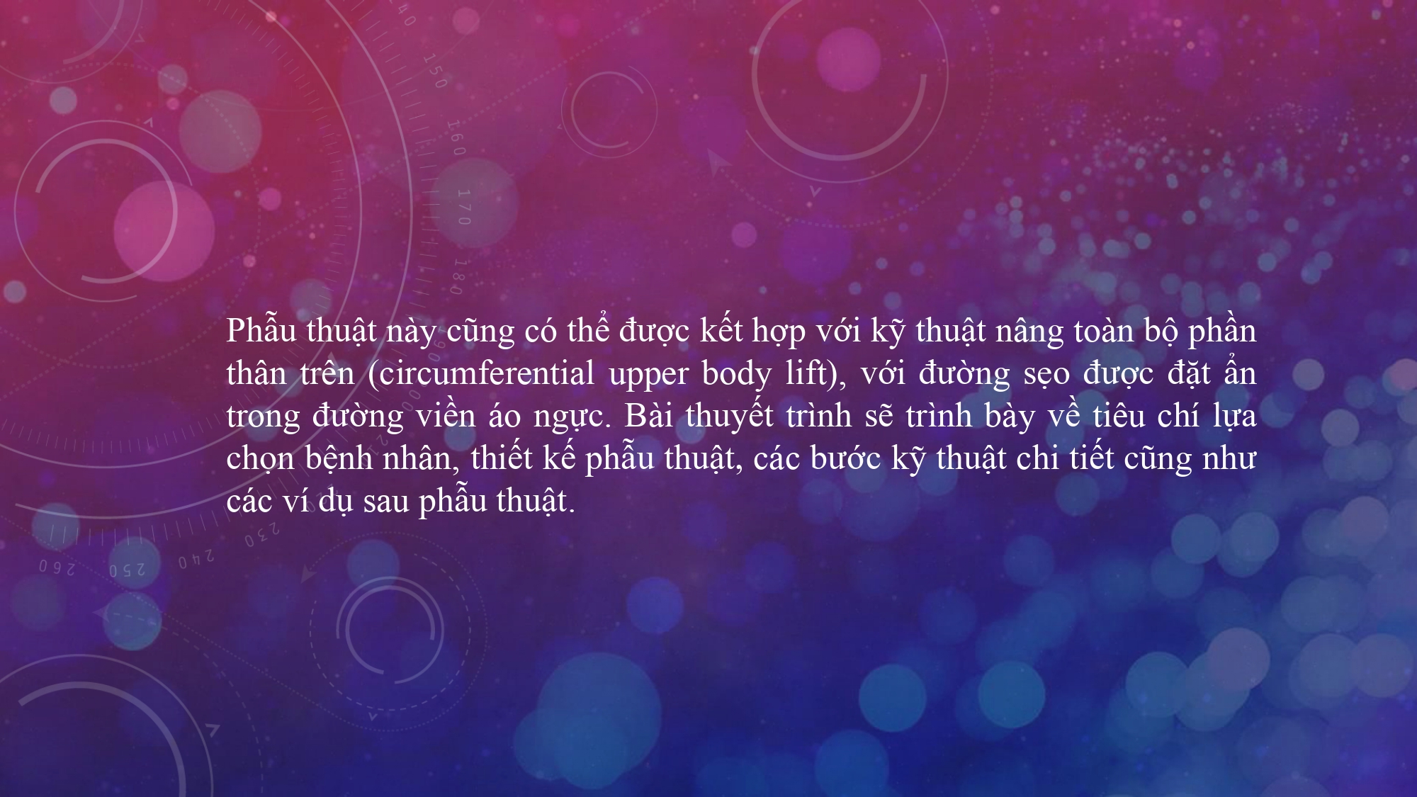 Đến với Hội nghị Khoa học PARS 2025, Giáo sư, Bác sĩ. J. Peter Rubin mang đến 4 bài báo cáo. Trong đó, bài báo cáo thứ 2 có chủ đề “Treo tuyến vú bằng mô bì (dermal suspension mastopexy) sau giảm cân lớn”