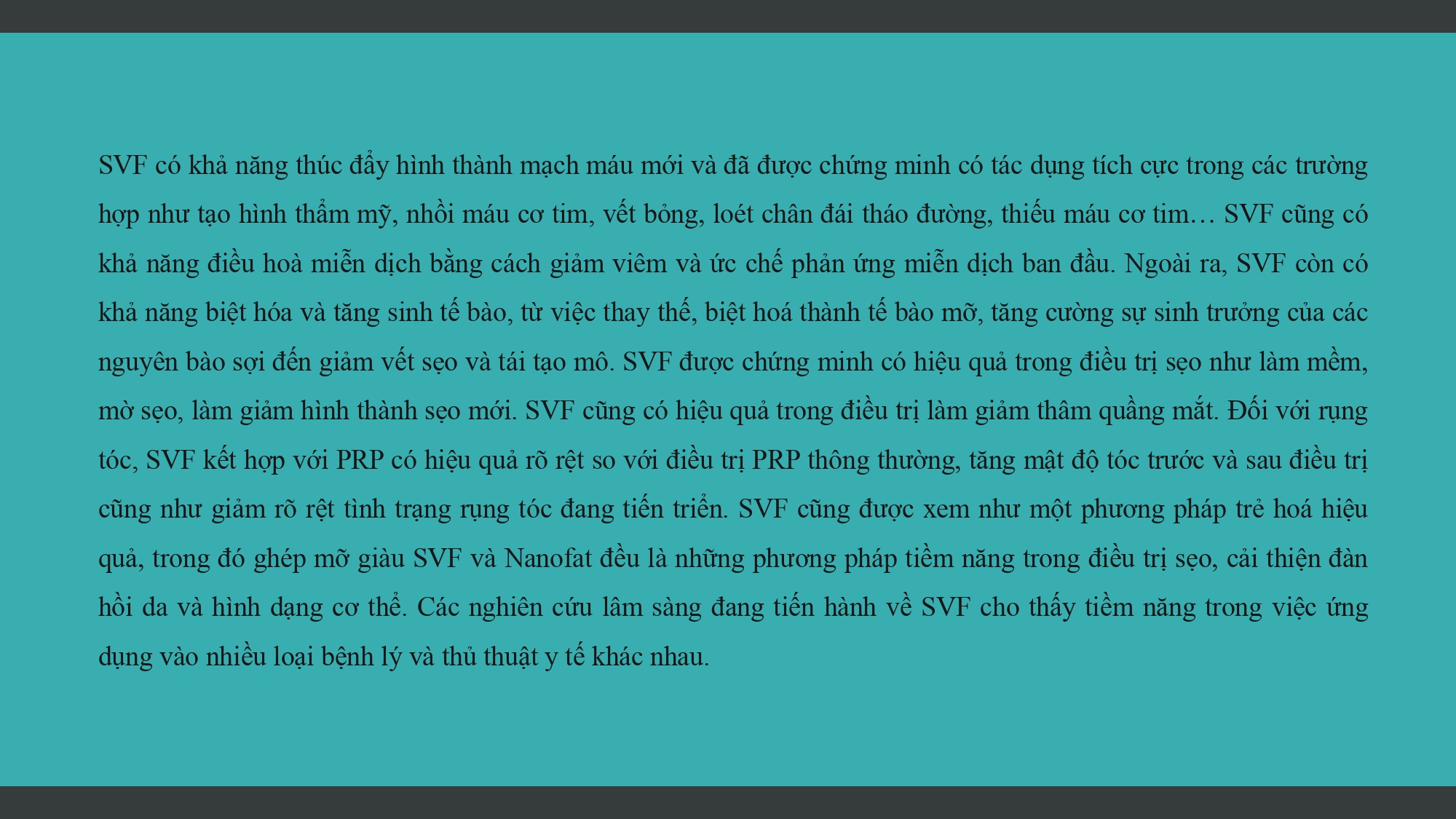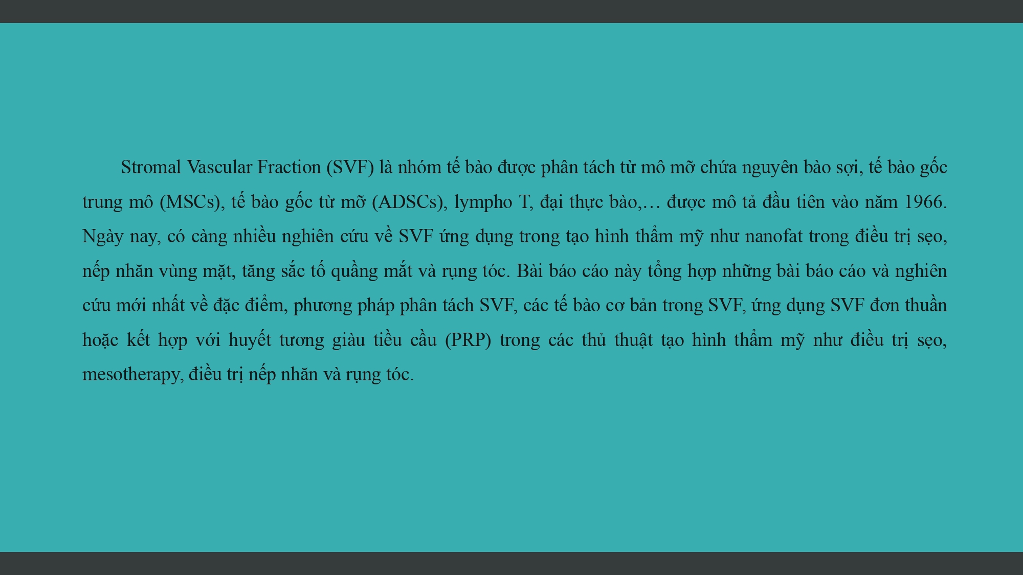 Từ tế bào đến tái tạo: Sức mạnh của Stromal Vascular Fraction trong tạo hình thẩm mỹ - PGS. TS. BS Phạm Hiếu Liêm
