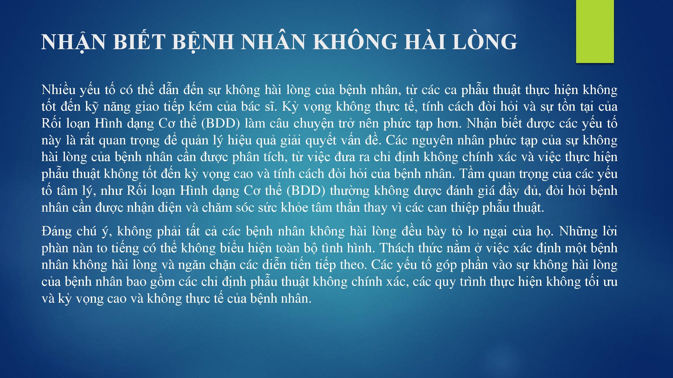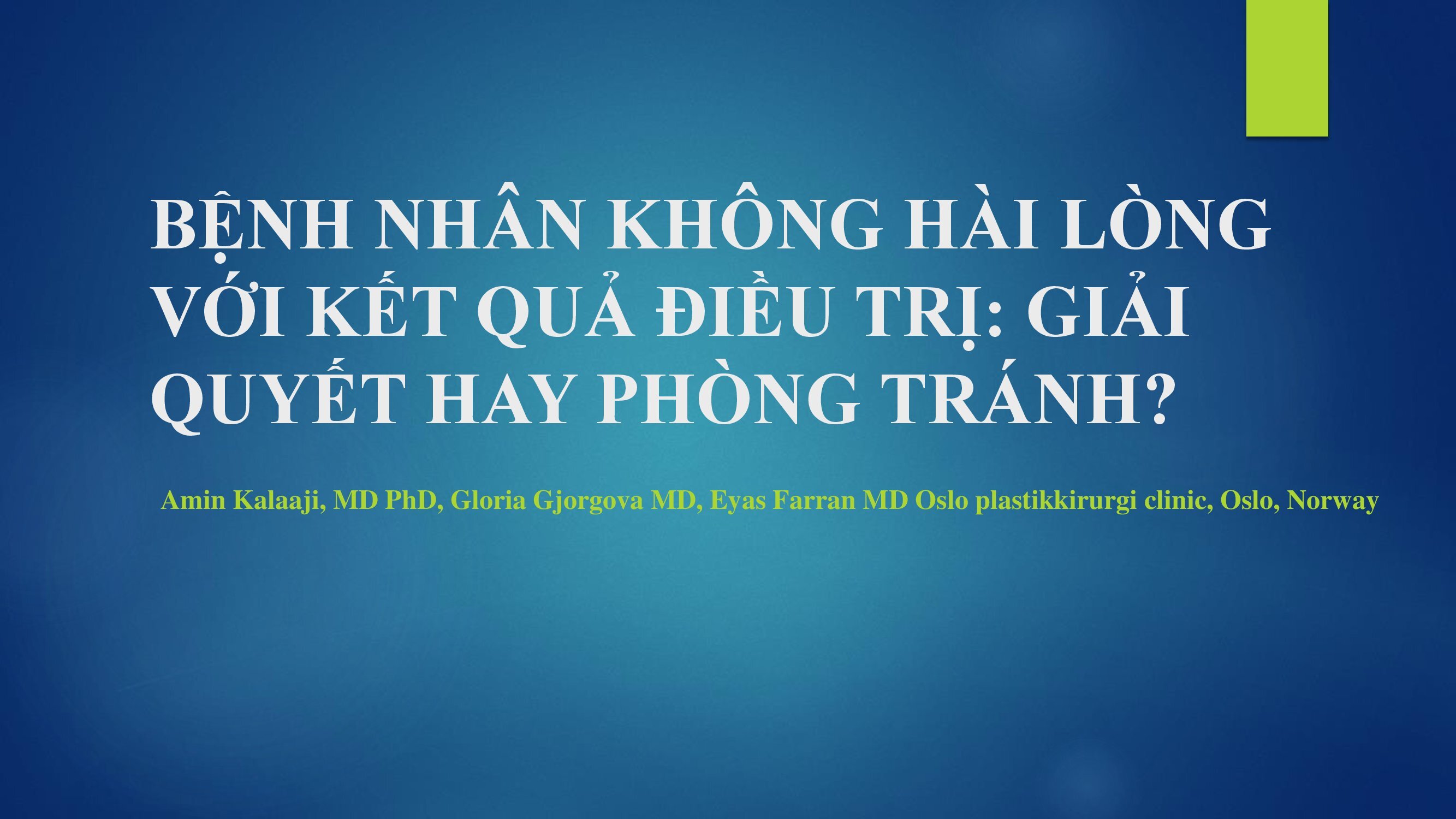 Bệnh nhân không hài lòng với kết quả điều trị: Giải quyết hay phòng tránh? - Tiến sĩ Amin Kalaaji