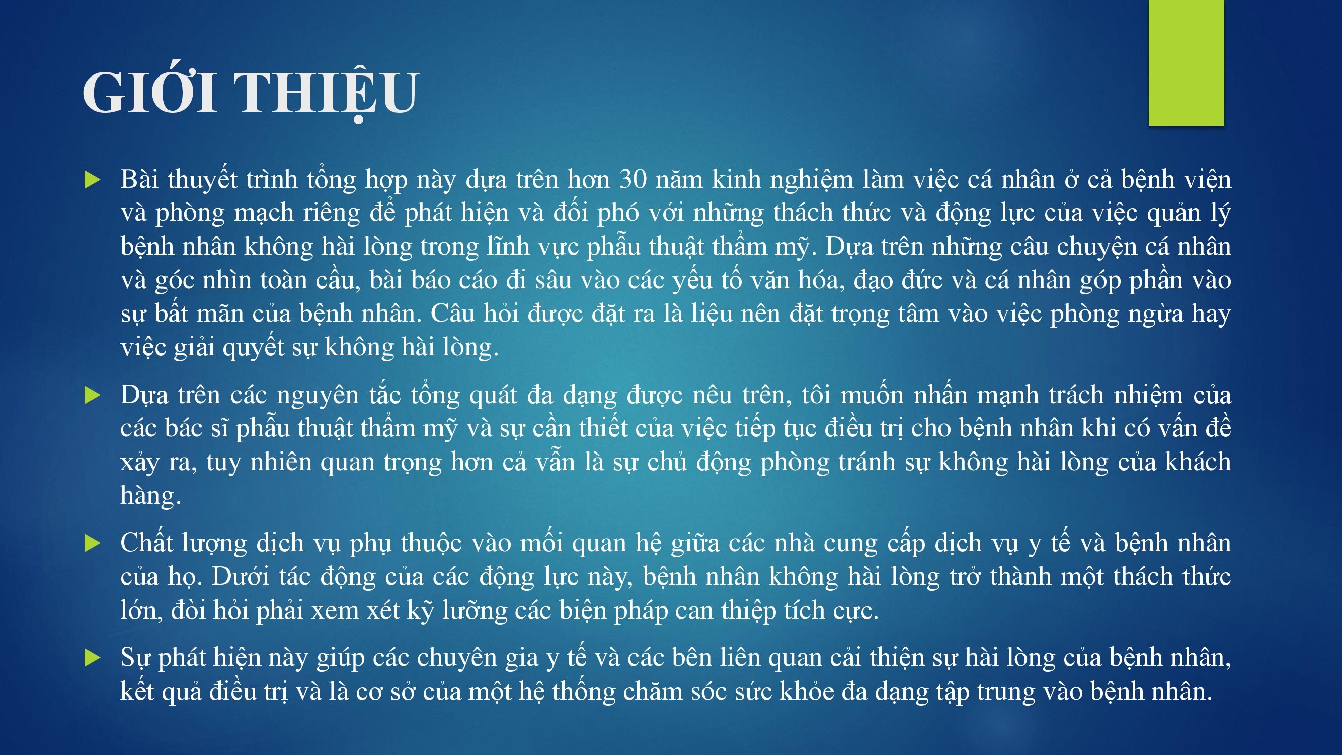Đến với Hội nghị Khoa học PARS 2024, Tiến sĩ Amin Kalaaji mang đến 8 bài báo cáo. Trong đó, bài báo cáo thứ 8 có chủ đề “Bệnh nhân không hài lòng với kết quả điều trị: Giải quyết hay phòng tránh?”