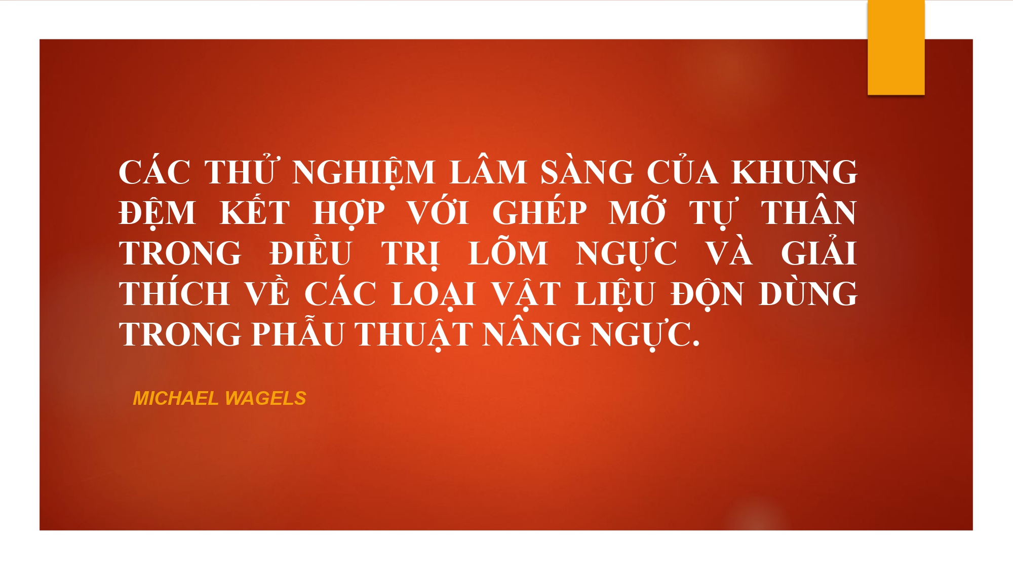 Đến với Hội nghị Khoa học PARS 2025, Tiến sĩ. Bác sĩ Michael Wagels mang đến 4 bài báo cáo. Trong đó, bài báo cáo thứ 3 có chủ đề “Các thử nghiệm lâm sàng của khung đệm kết hợp với ghép mỡ tự thân trong điều trị lõm ngực và giải thích về các loại vật liệu độn dùng trong phẫu thuật nâng ngực