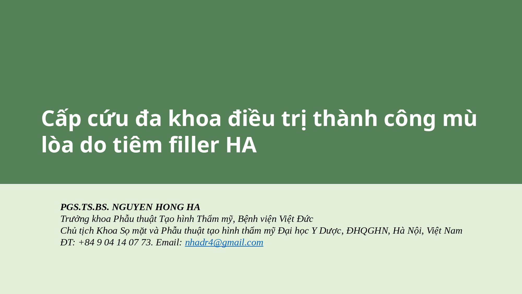 Cấp cứu đa khoa điều trị thành công mù lòa do tiêm filler HA - PGS. TS. BS Nguyễn Hồng Hà