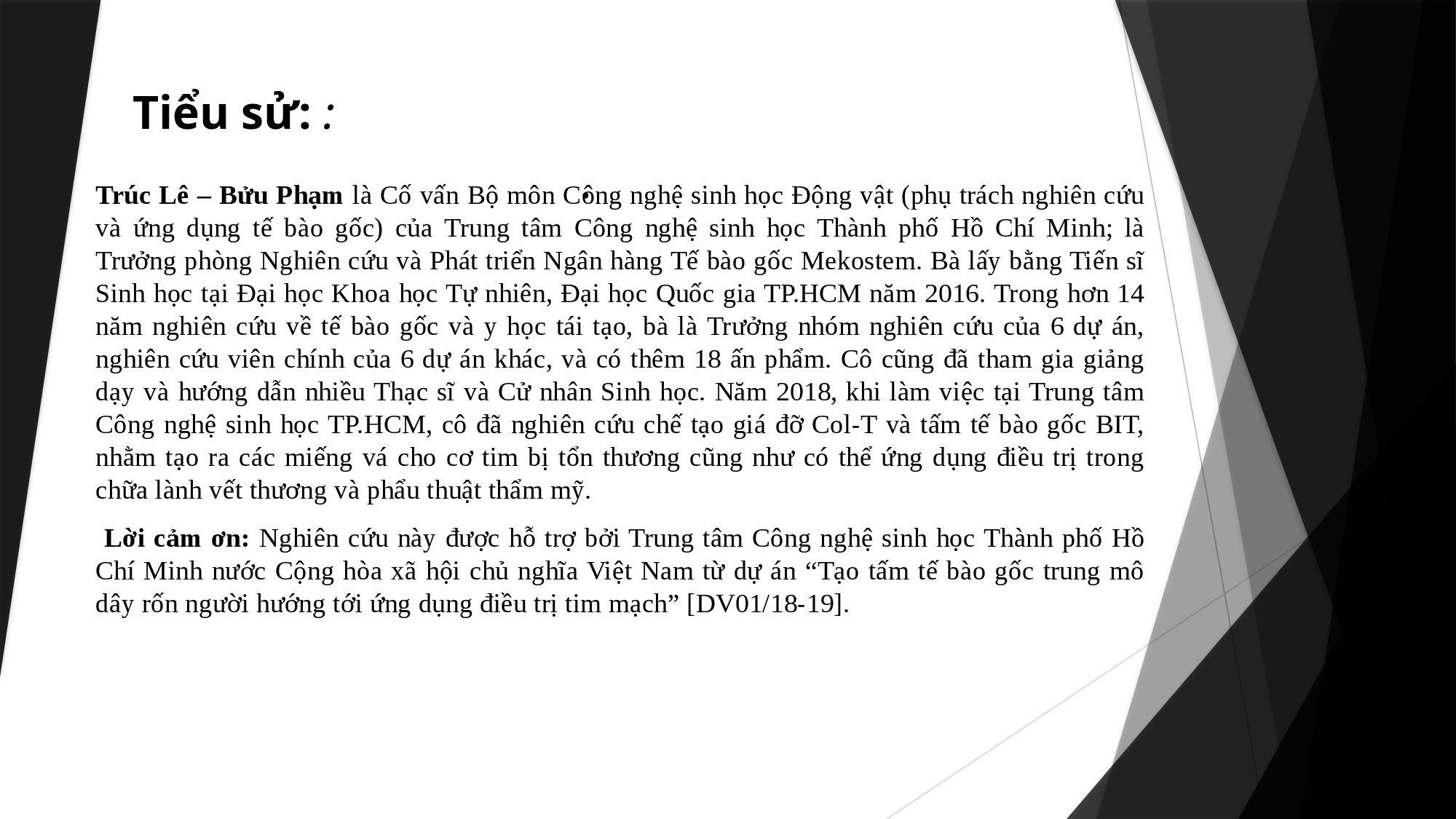 TS Phạm Lê Bửu Trúc hiện đang giữ chức vụ Trung Tâm Công Nghệ Sinh Học Thành Phố Hồ Chí Minh