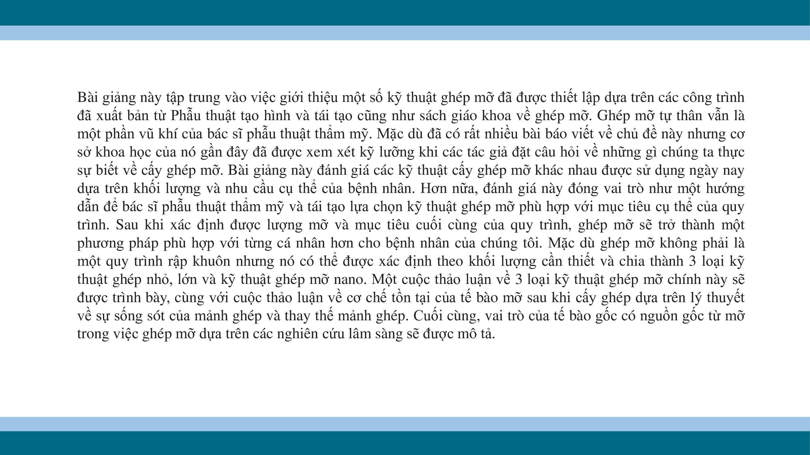 Hiện nay chúng ta biết gì về ghép mỡ tự thân? - Giáo sư Lee L.Q. Pu