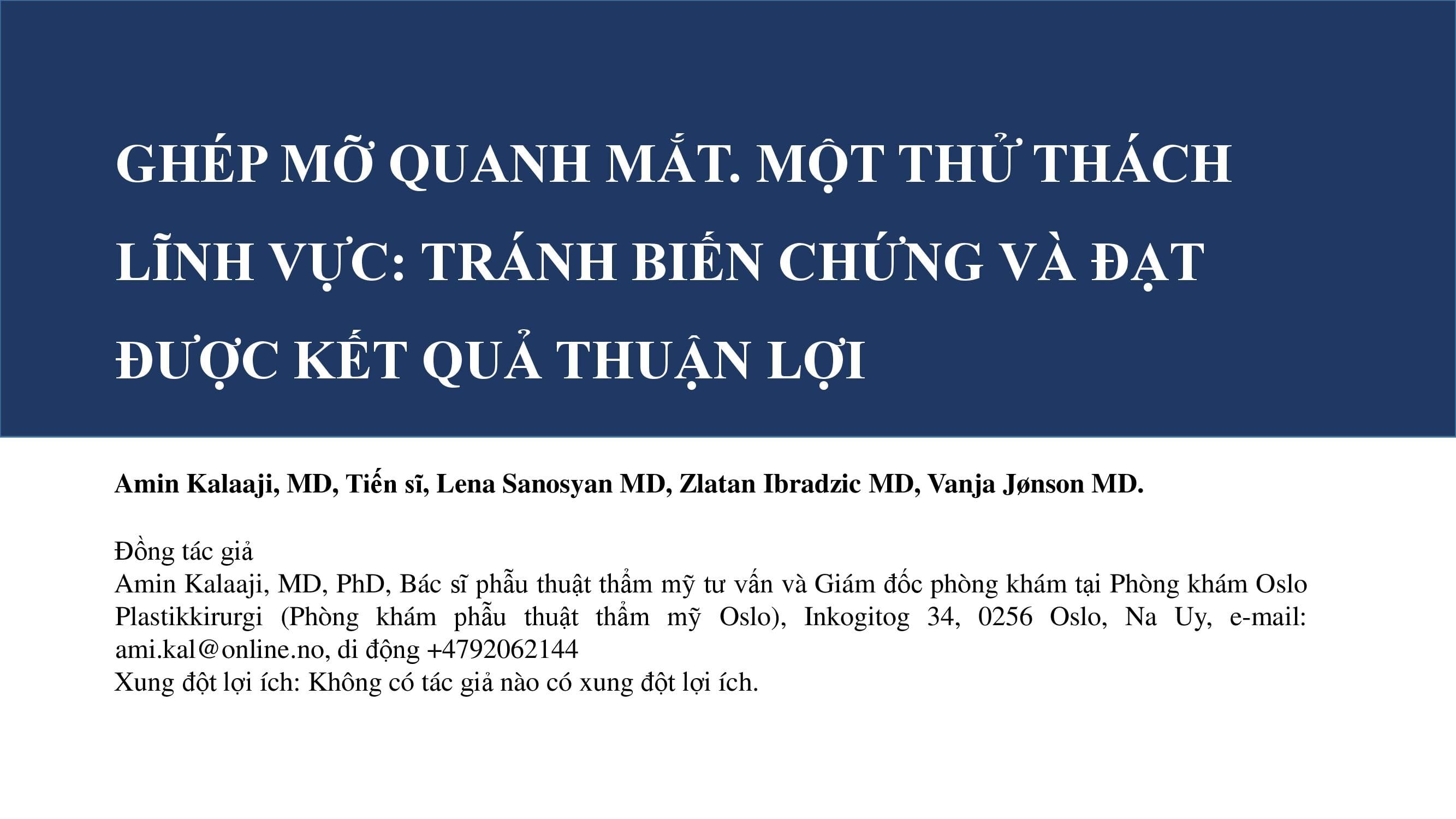 Ghép mỡ quanh mắt. Một thử thách lĩnh vực: tránh biến chứng và đạt được kết quả thuận lợi - Tiến sĩ Amin Kalaaji
