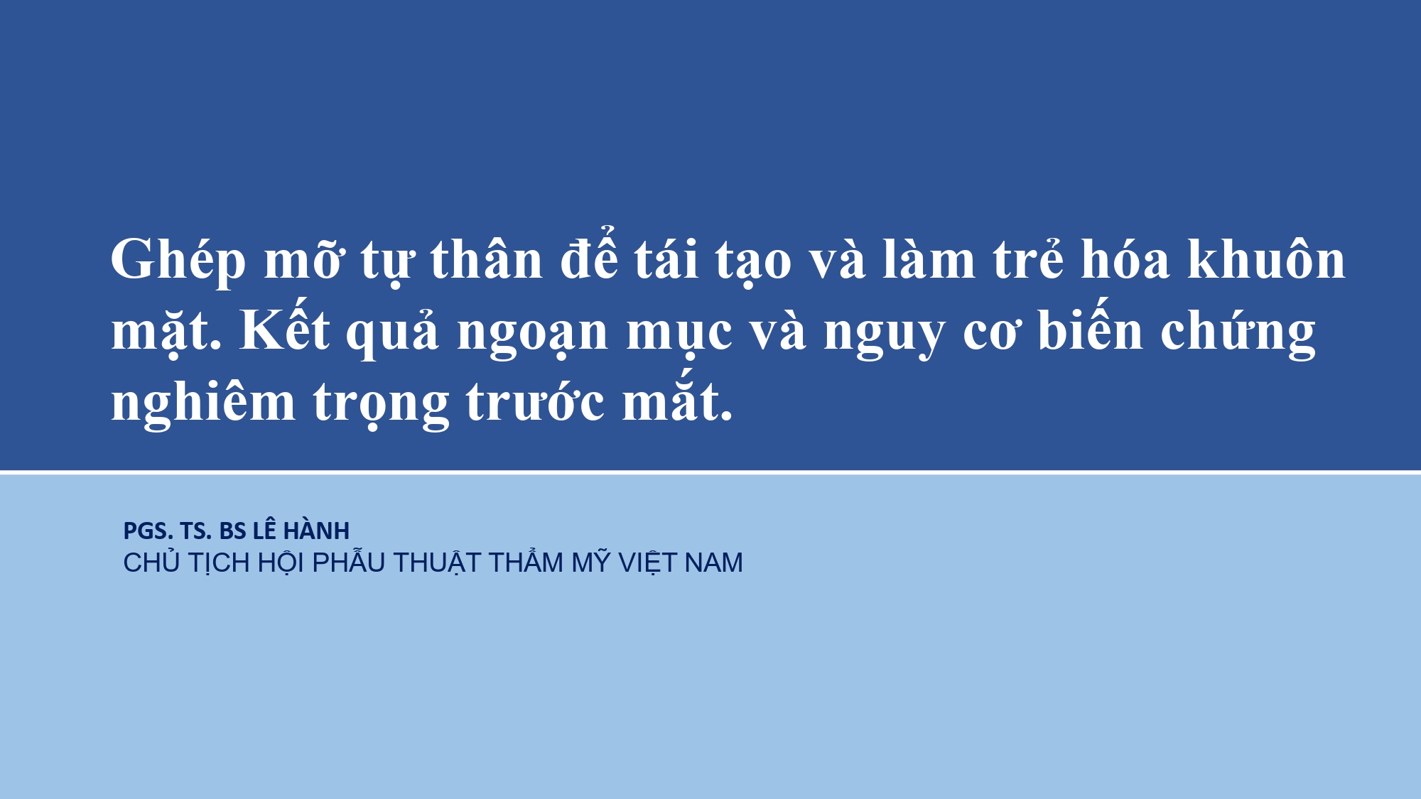 Đến với Hội nghị Khoa học PARS 2025, PGS. TS. BS Lê Hành mang đến bài báo cáo chủ đề “Ghép mỡ tự thân để tái tạo và làm trẻ hóa khuôn mặt. Kết quả ngoạn mục và nguy cơ biến chứng nghiêm trọng trước mắt”