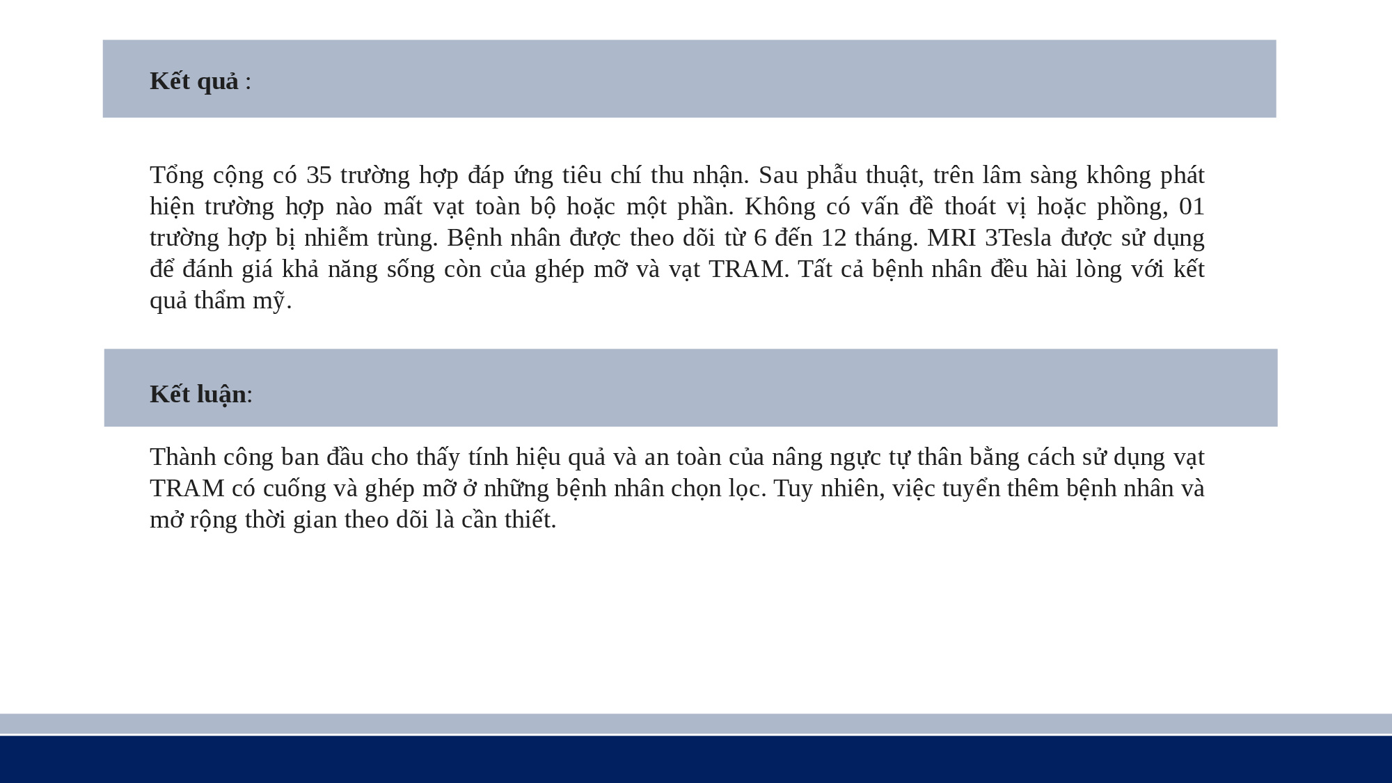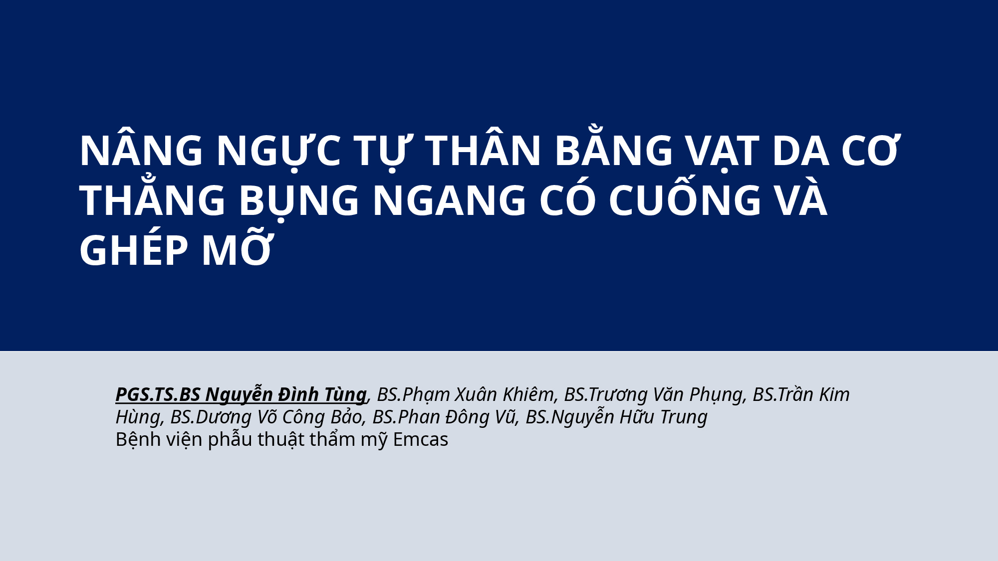 Nâng ngực tự thân bằng vạt da cơ thẳng bụng ngang có cuống và ghép mỡ - PGS. TS. BS Nguyễn Đình Tùng