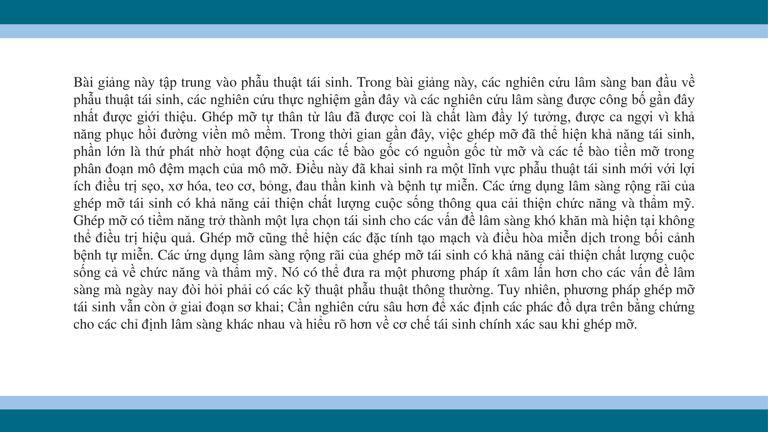 Phần hai: Phẫu thuật tái sinh